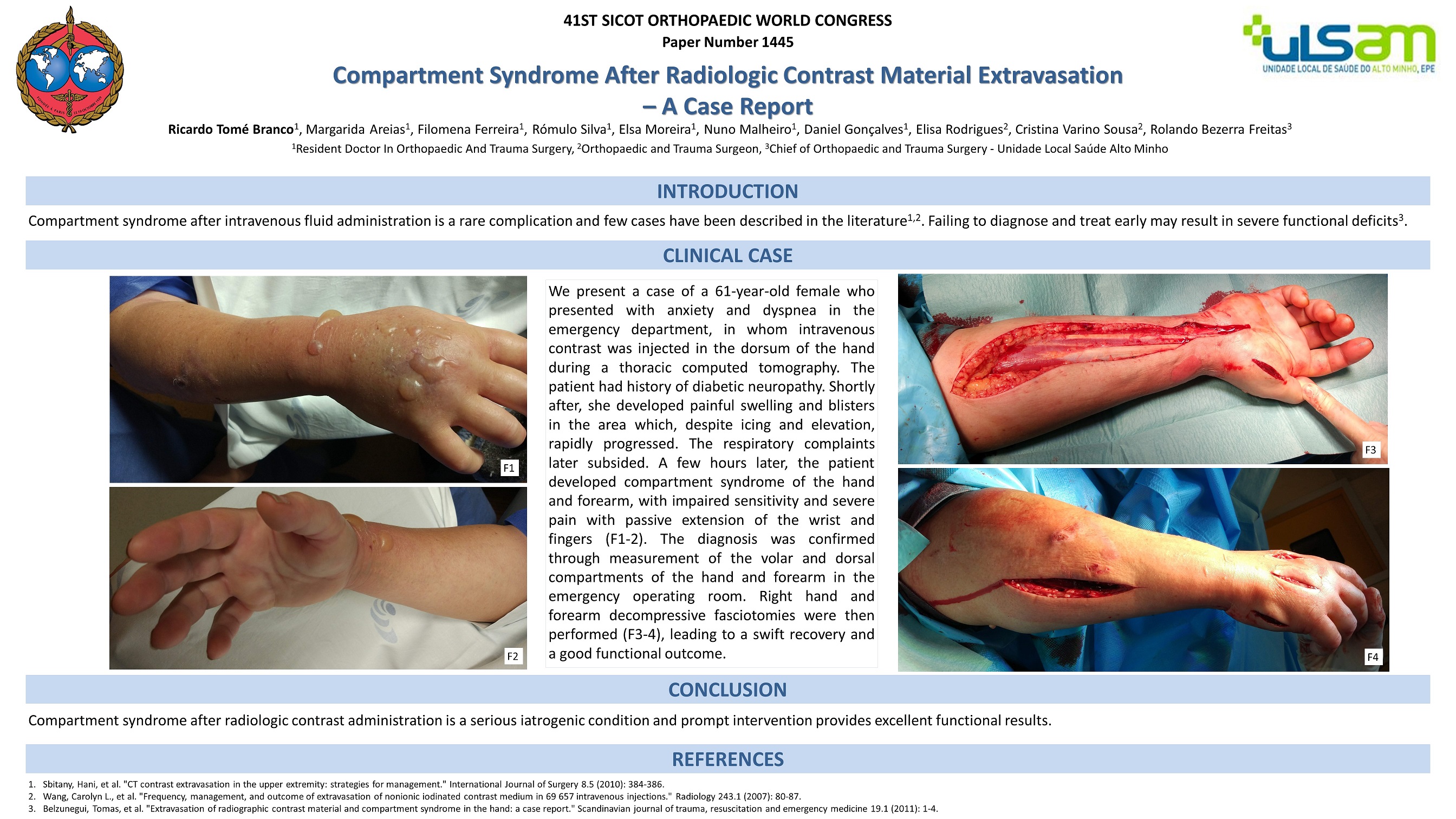 Discussion: This clinical case intends to show a rare but severe complication that orthopedic surgeons must recognize and decompress. Early intervention was crucial to obtain a good clinical outcome.