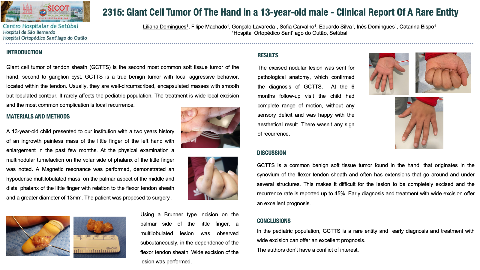 Giant Cell Tumor Of The Hand in a 13-year-old male – Clinical Report of a rare entity