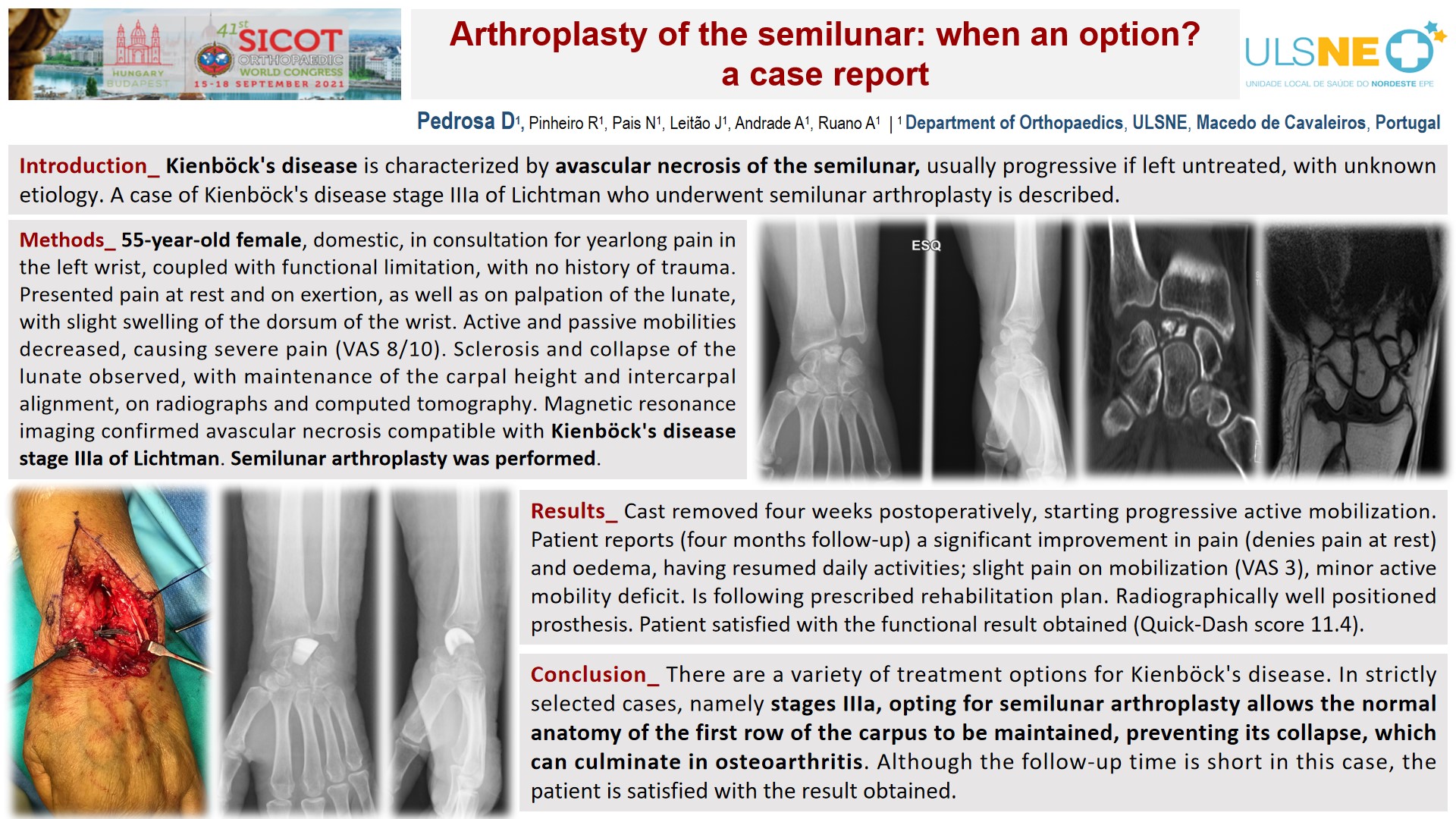 Results: Clinical and radiological outcomes are presented at 1-year follow-up. All patients were satisfied, with wrist pain control and return of strength, and better hand performance.