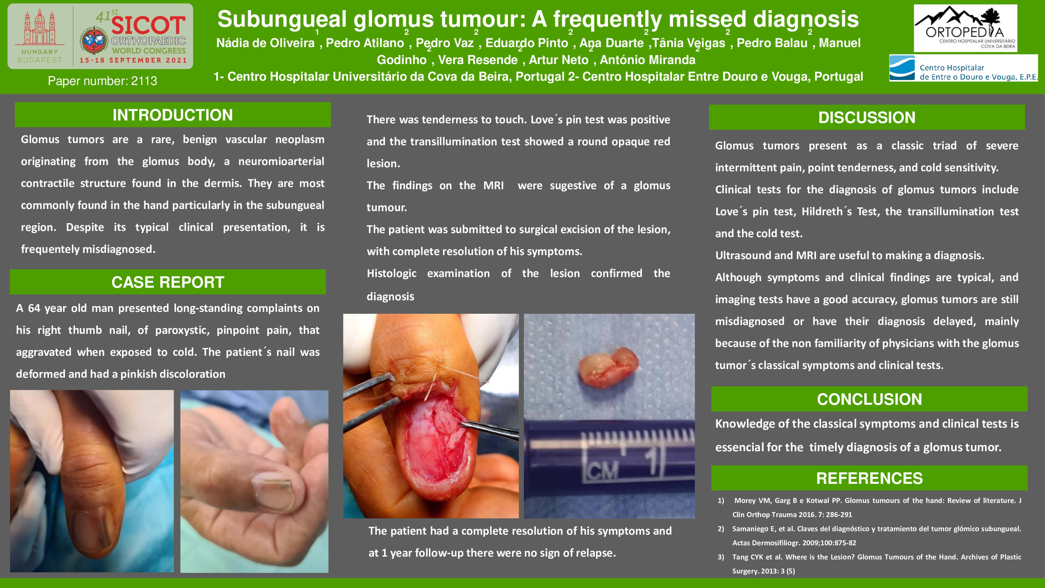 Given the characteristics of the tumour, we chose to do a radical excision of the 4th ray, with excellent functional and cosmetic outcomes.