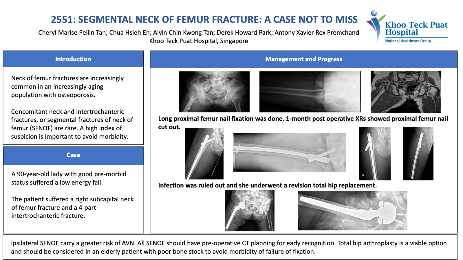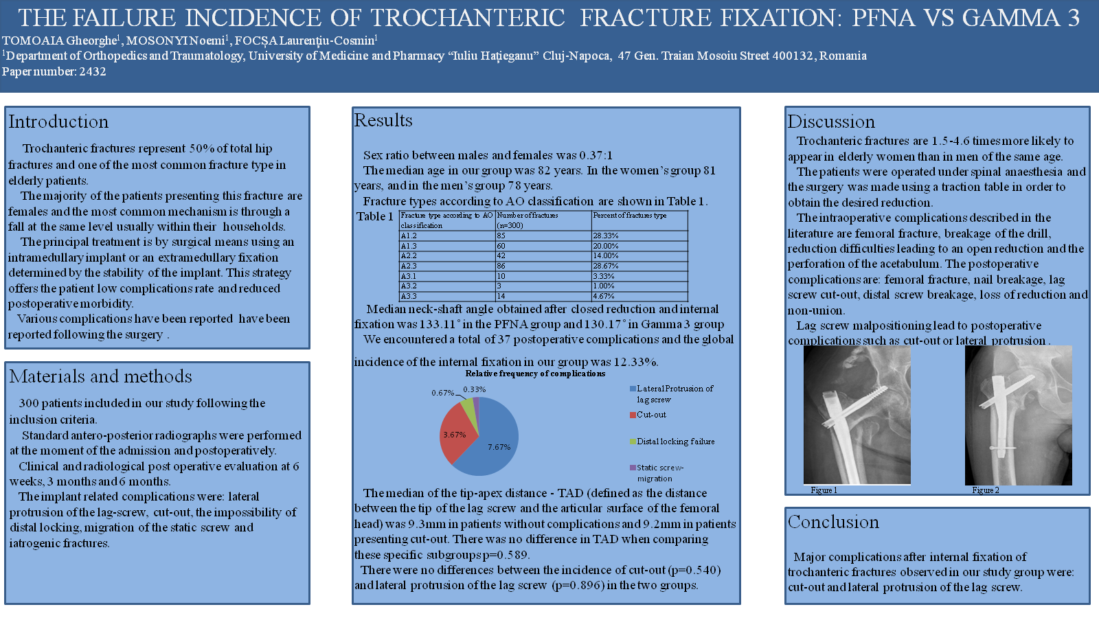 The assessment of hip fracture management must be continuous in order to highlight the defects and to propose solutions that should be applied and re-evaluated.