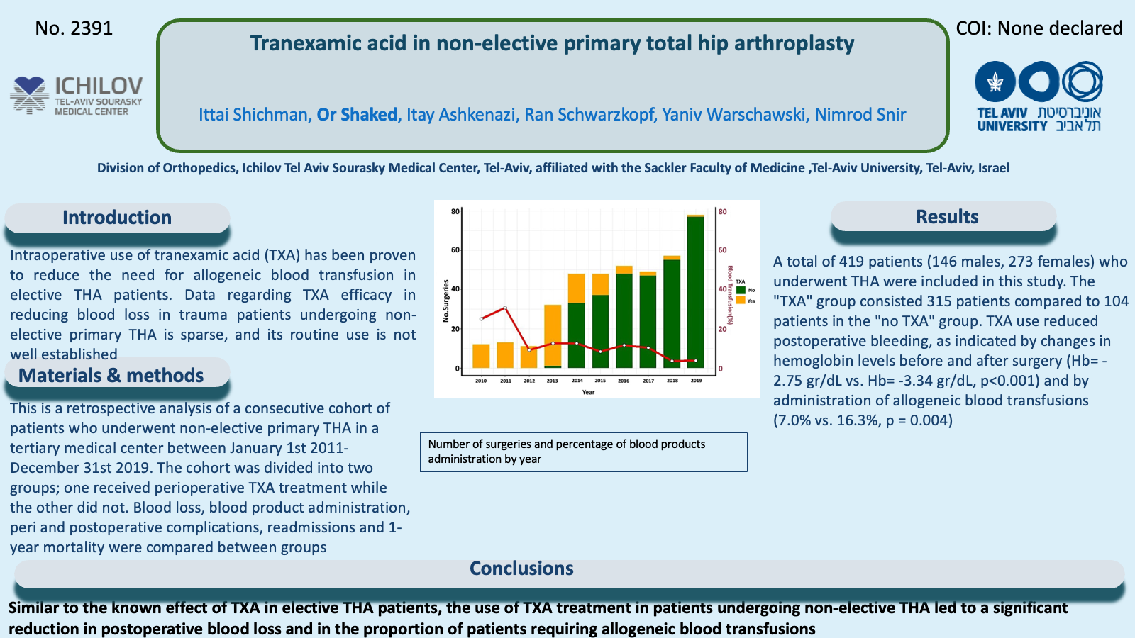 Tranexamic acid in non-elective primary total hip arthroplasty