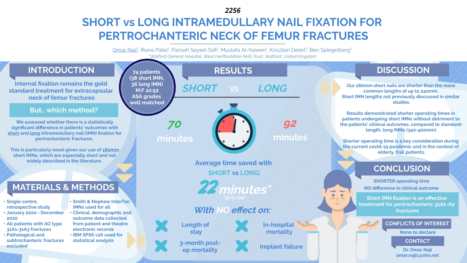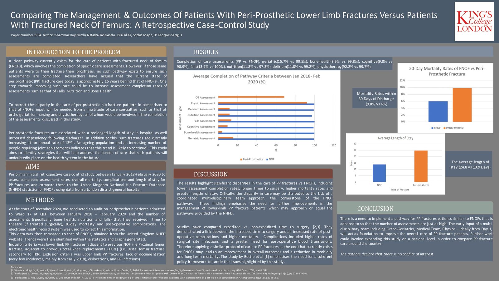 METHODS: We collected patient data in St James’ Hospital using the Hospital In-Patient Enquiry database, Electronic Patient Records, and phone calls, for in-hospital hip fractures between 10/02/2017 and 22/04/2020.