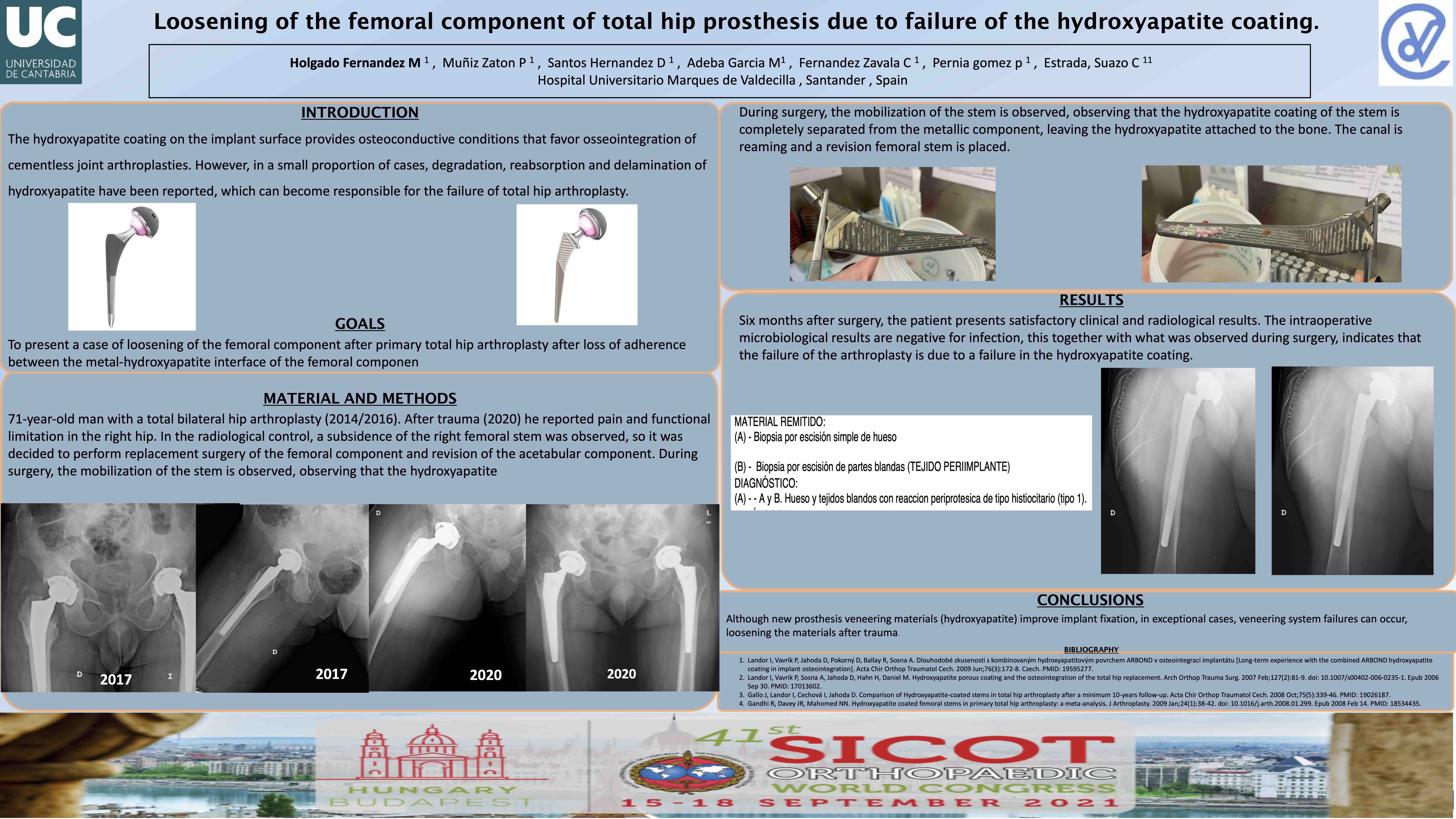 Six months after surgery, the patient presented with satisfactory clinical and radiological results. Intraoperative microbiological results were negative for infection and these results together with what was observed during surgery indicate that the failure of the arthroplasty was due to a failure in the hydroxyapatite coating.
