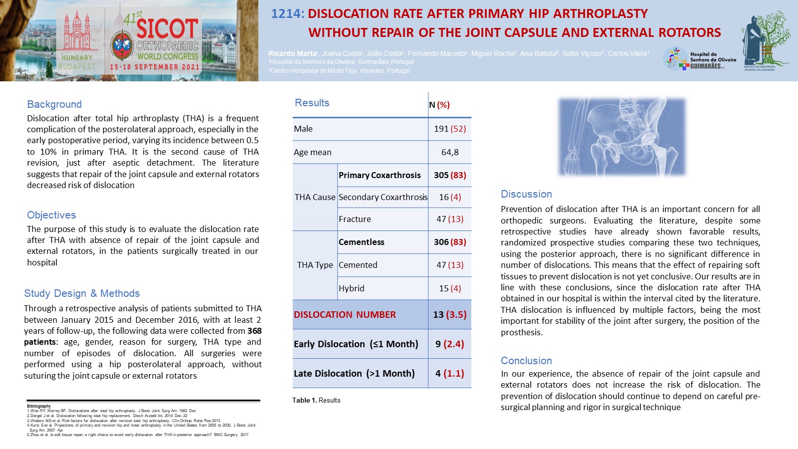 Conclusions: The dislocation rate after THA obtained in our hospital is within the interval cited by the literature. The absence of repair of the joint capsule and external rotators, besides reducing surgical time, decreases blood loss. The prevention of dislocation should continue to depend on careful pre-surgical planning and rigor in surgical technique.