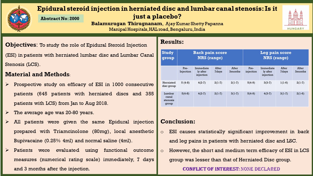 Epidural steroid injection in herniated disc and lumbar canal stenosis: Is it just a placebo?