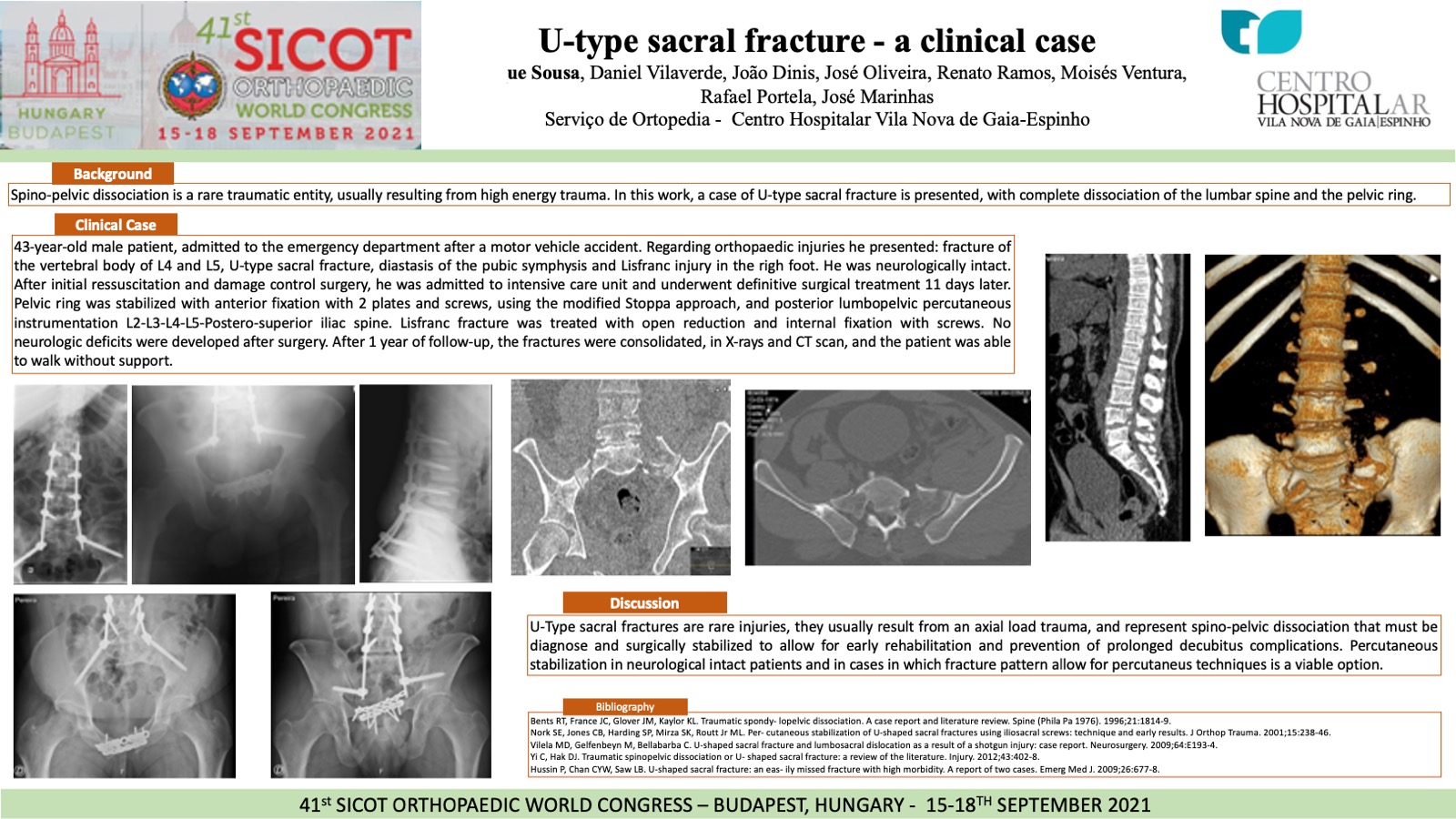 Spino-pelvic dissociation is a rare traumatic entity, usually resulting from high energy trauma. In this work, a case of U-type sacral fracture is presented, with complete dissociation of the lumbar spine and the pelvic ring.