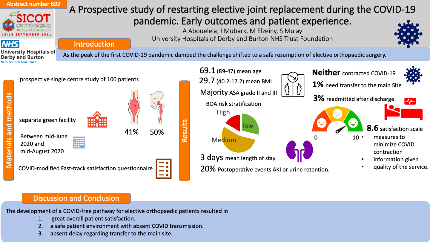 This is a prospective single centre study of 100 patients who underwent an elective joint replacement procedure early August 2020.