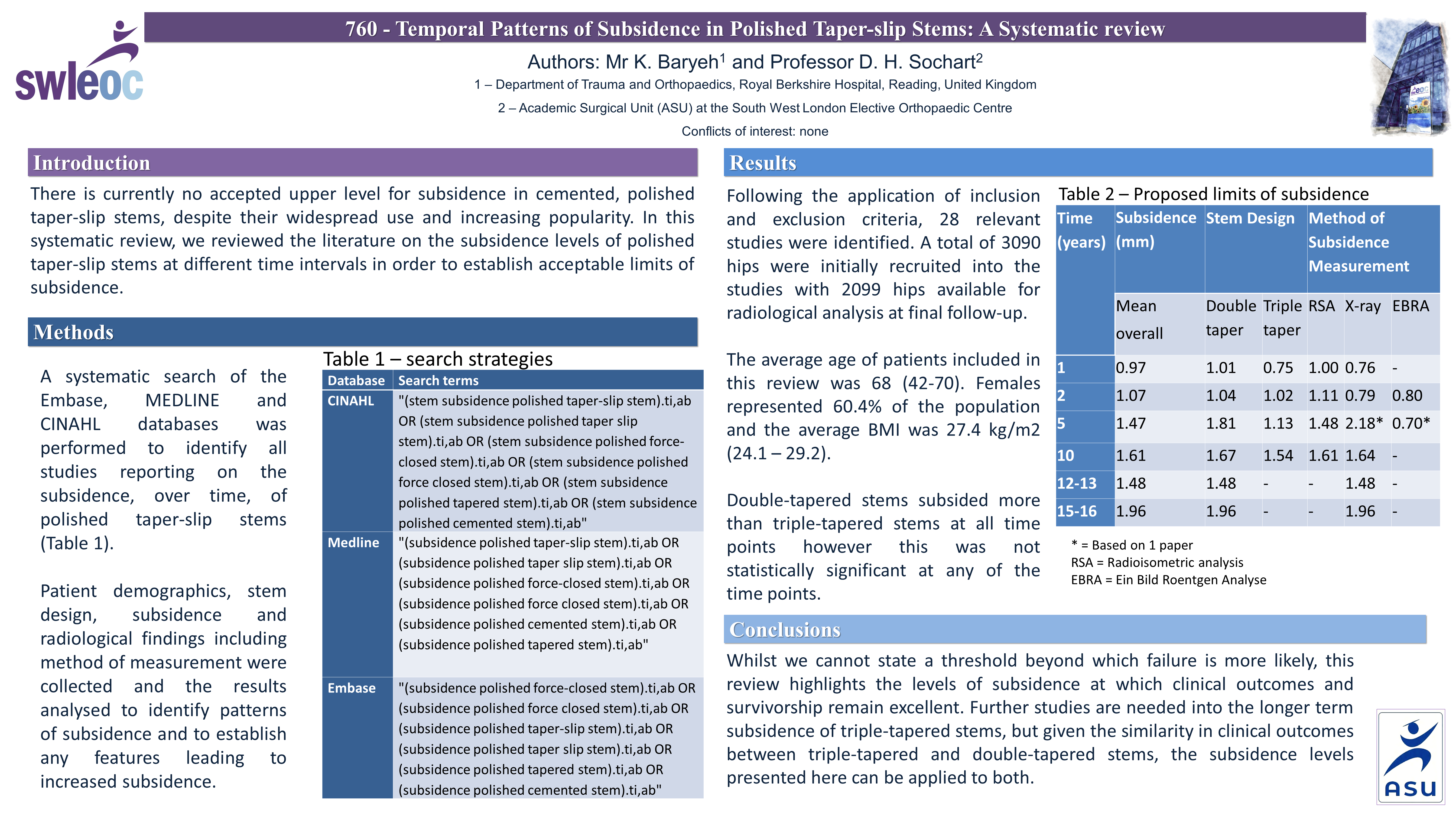 Temporal Patterns of Subsidence in Polished Taper-slip Stems: A Systematic review