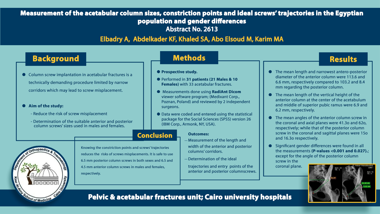 Measurement of the acetabular column sizes, constriction points and ideal screws, trajectories in the Egyptian population and gender differences