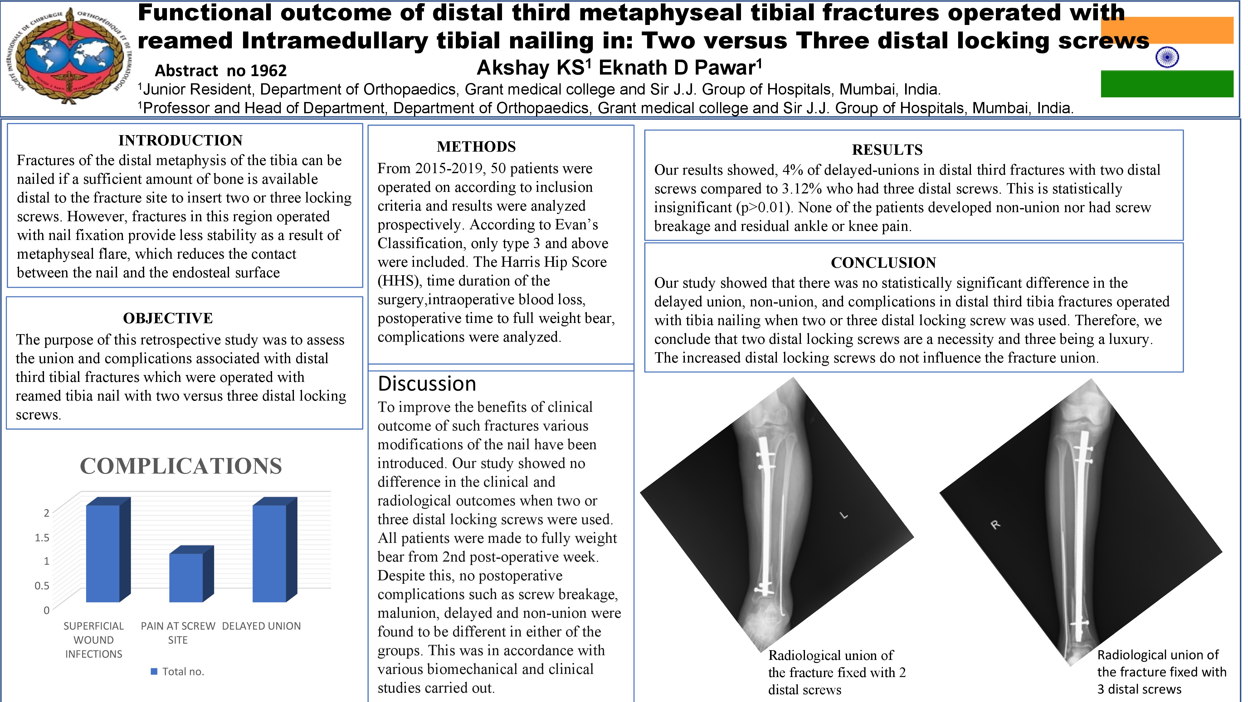Functional outcome of distal third metaphyseal tibial fractures operated with reamed Intramedullary tibial nailing in: Two versus Three distal locking screws