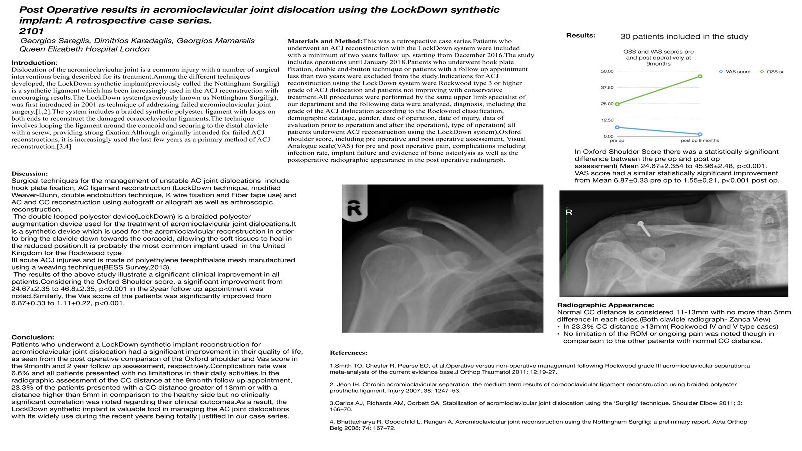 Results: The patients who underwent a Lockdown synthetic implant reconstruction for an acromioclavicular joint dislocation, improved from