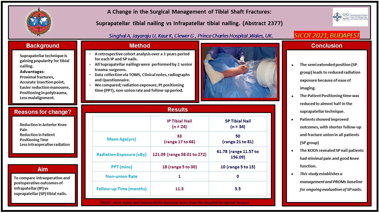 A change in the surgical management of tibial shaft fractures: Suprapatellar tibial nailing vs Infrapatellar tibial nailing.