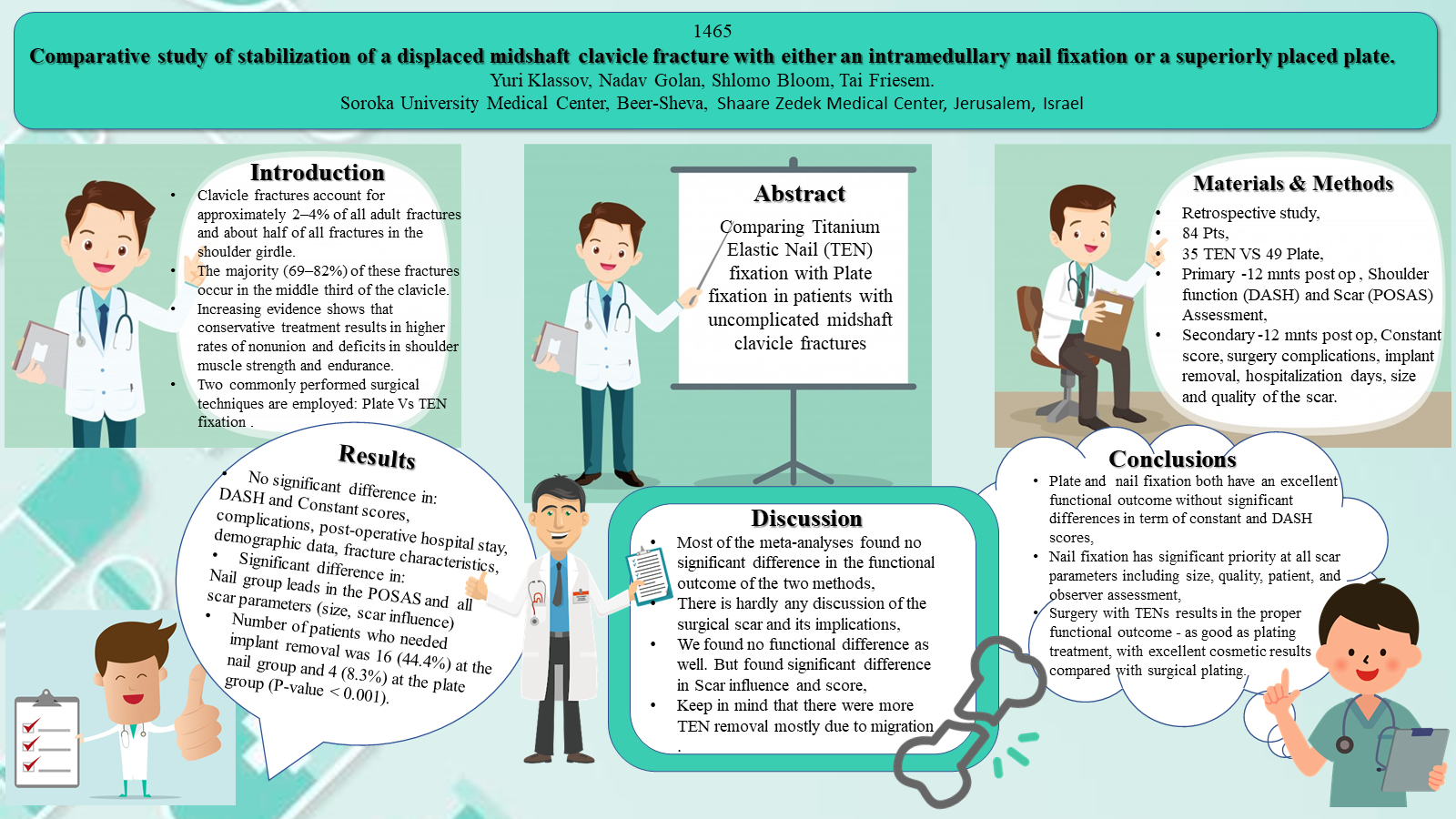 health-care system with poorly understood forms of injuries, mainly orthopaedic fractures. Methods: A total of 3,331 e-scooter-related admissions were retrospectively collected between May 2017 and February 2020 in a level-I trauma center. These admissions were analyzed for demographic variables, orthopaedic fracture diagnosis, associated injuries, and surgical treatment. Results: A total of 716 fractures were diagnosed in 563 patients, with 46.4% of the patients requiring hospitalization. Of 492 upper-limb fractures, 89.2% occurred in a rider fall mechanism; and of 210 lower-limb fractures, 15.7% occurred in rider-vehicle collisions. Fifty-nine percent of long bone fractures were complex fragmentary and/or intra-articular fractures. Orthopaedic surgeons recommended that 225 fractures undergo surgical treatment. The
