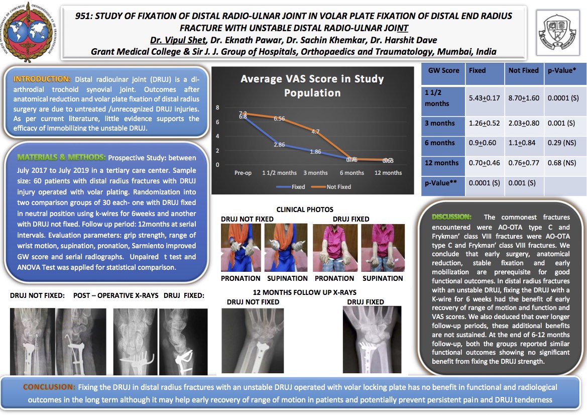 STUDY OF FIXATION OF DISTAL RADIO-ULNAR JOINT IN VOLAR PLATE FIXATION OF DISTAL END RADIUS FRACTURE WITH UNSTABLE DISTAL RADIO-ULNAR JOINT