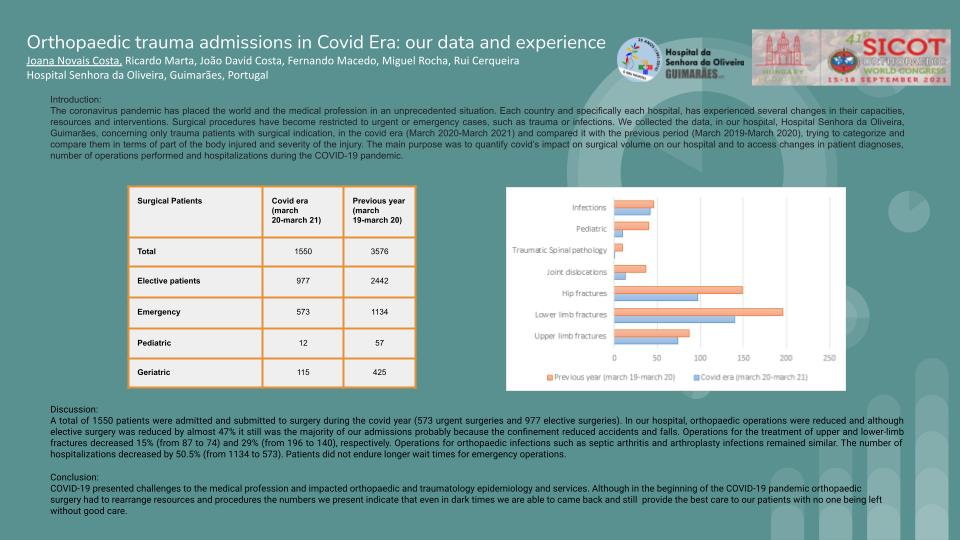 Orthopaedic presentations in 2020 and 2019 were 736(37.2%) and 1,729(36.2%) respectively, representing a57.4% reduction. During the lockdown,43.6%of operations were major procedures and 56.4%were minor procedures, representing a significant proportional shift.