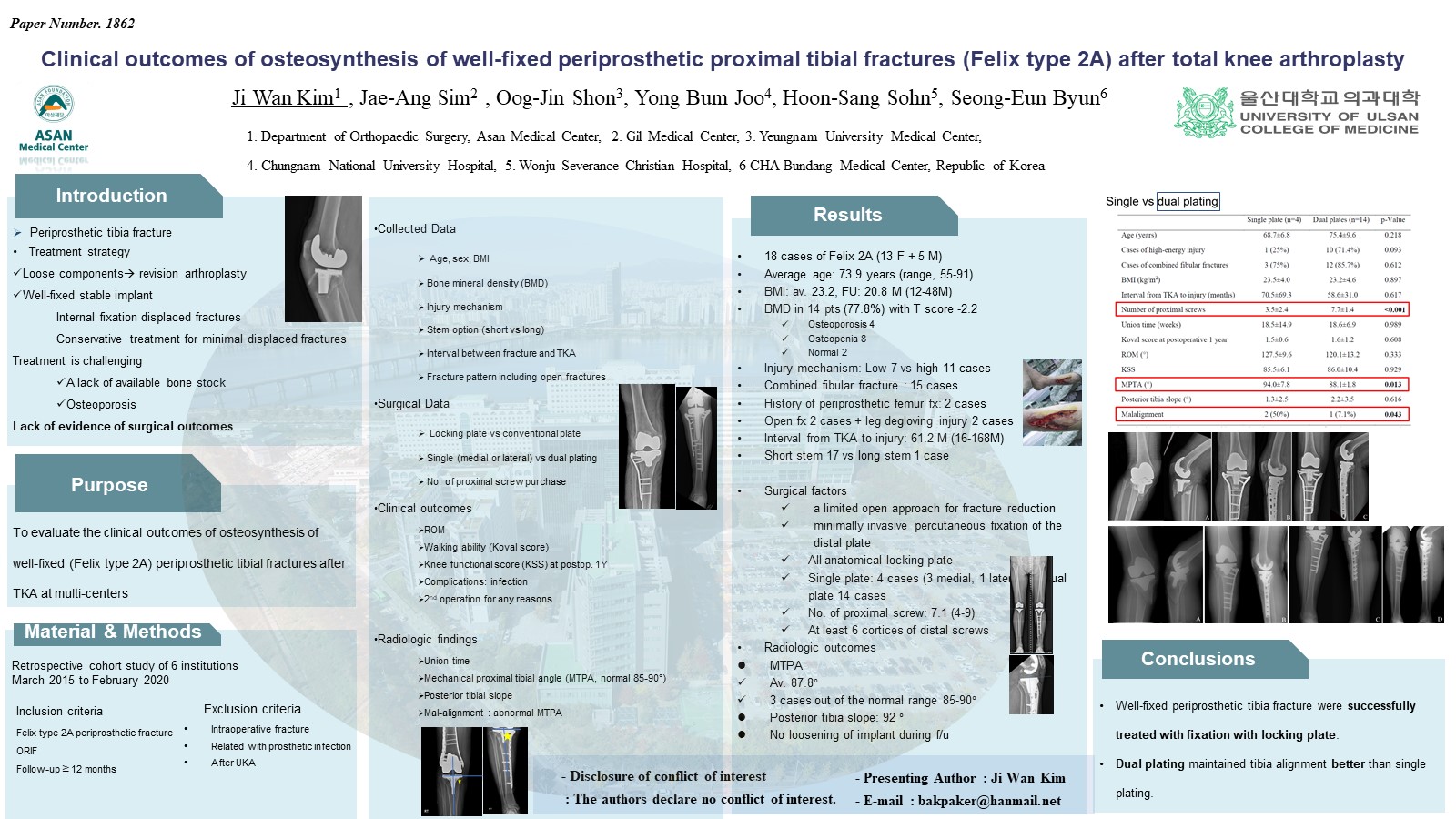class 41C, with open reduction and internal fixation of the proximal part of the tibia being the most common procedure (n=28). A total of 22 patients (3.9%) required reoperation within 1 year.