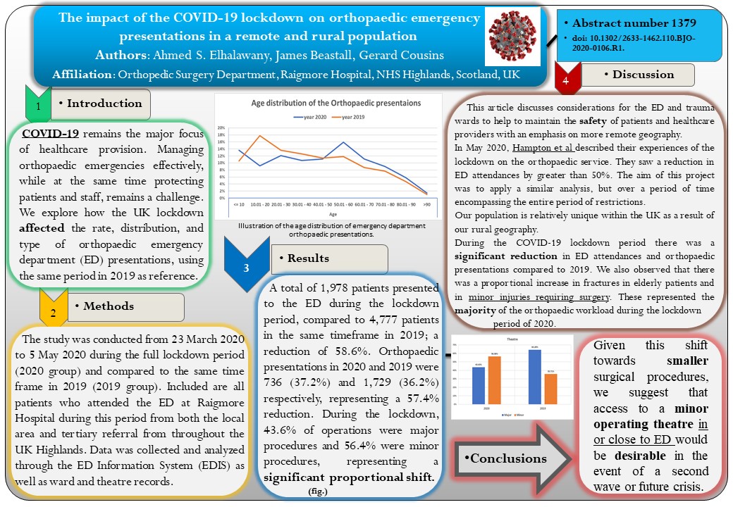 COVID-19 remains the major focus of healthcare provision. Managing orthopaedic emergencies effectively, while at the same time protecting patients and staff, remains a challenge. We explore how the UK lockdown affected the rate, distribution, and type of orthopaedic emergency department(ED) presentations, using the same period in 2019 as a reference. This article discusses considerations for the ED and trauma wards to help to maintain the safety of patients and healthcare providers with an emphasis on more remote geography.