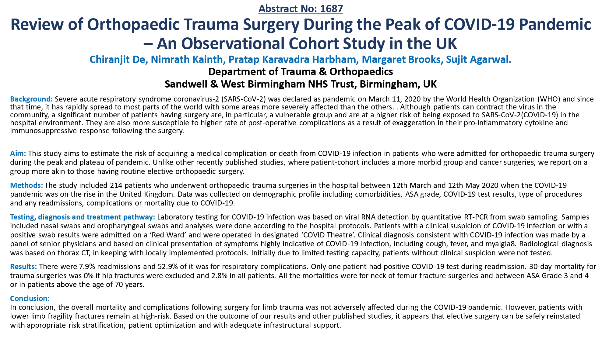 Review of Orthopaedic Trauma Surgery During the Peak of COVID-19 Pandemic – An Observational Cohort Study in the UK.